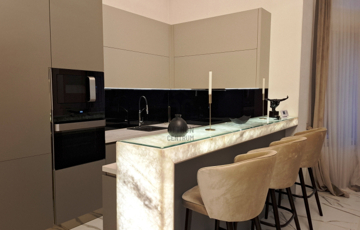 Belsőépítész munkáját dicséri az egyedi prémium kivitelű bútorok, minőségi burkolóanyagok és kortárs disignerek műveinek tökéletes ötvözése, mely egyszerre nyújt otthonos és kifinomúlt életérzést.