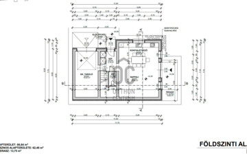 Fszt : konyha - étkező - nappali, wc , lépcső emeletre + garázs helyiségekből áll.