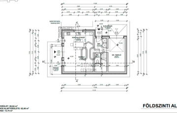 Fszt : konyha - étkező - nappali, wc , lépcső emeletre + garázs helyiségekből áll.