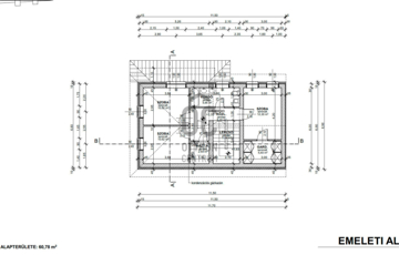 Emelet helyiségei : 3 szoba, fürdő, háztartási helyiség + az egyik szobához gardrob szoba.