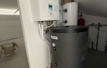 Підлогове опалення з тепловим насосом, ефективна ізоляція товщиною 15 см і вікна високої якості з трьома шарами скла забезпечують оптимальний комфорт і енергоефективність.