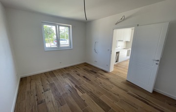 Die Wärmepumpen-Fußbodenheizung, die effiziente 15 cm-Dämmung und die hochwertigen Fenster mit Dreifachverglasung sorgen für optimalen Komfort und Energieeffizienz.