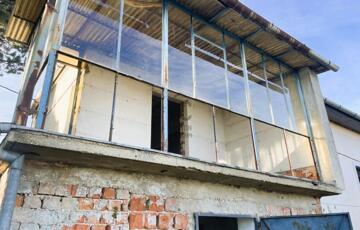 - A ház tégla falazattal, bitumenes födémmel (az üvegezett terasz fém lemezzel borítottan) épült.