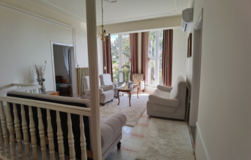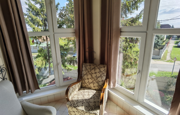 - Kényelmes nappali, amely egy remek közös tér a családi összejöveteleknek, amiket egy cserépkályha tesz hangulatossá.