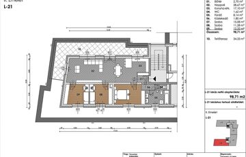 A 98,70 m2-es, 2. emeleti (L21), D fekvésű lakás HELYISÉGEI: