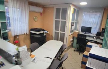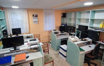 A <strong>szuterén irodarész</strong> önálló utcai bejárattal kb. <strong>40–50 m²</strong>, teljesen kialakítva egy 6–9 fős adminisztratív munkára.<br />