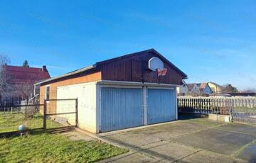 Mellette található a <strong>kétállásos betongarázs</strong>, amely garázsként és tárolóként egyaránt jól használható.</p><p>A <strong>telek 931 m²-es</strong>, gondozott, <strong>saroktelek</strong>, két utcáról megközelíthető — így a lakótér, az iroda és az üzleti rész forgalma kényelmesen szétválasztható.<br />