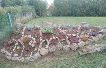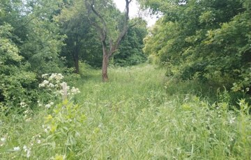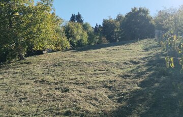 Elrendezése: a lenti egynegyed része sík, egynegyed része kb. 40%-os emelkedő, másik fele, a fenti rész 10%-ban emelkedős. Támfal nem szükséges. A domb tetején a telek végében egy 400 nm2-es kis erdő is van.