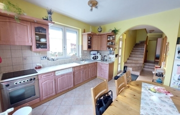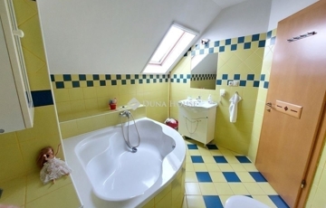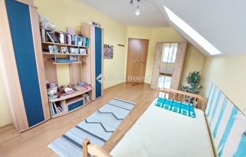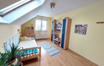A 2004-ben épült, DUPLAKOMFORTOS, KÉTSZINTES, összesen 110 nm-es házrész földszintjén TÁGAS, AMERIKAI KONYHÁS nappali kapcsolódik egy 21 nm-es NYITOTT teraszhoz. Ezen a szinten található még egy VILÁGOS, DÉLI FEKVÉSŰ, 14 nm-es vendégszoba, egy rejtettzuhanyzós fürdőszoba és egy PRAKTIKUS kamra. Az emeleten két TÁGAS, VILÁGOS hálószoba és egy MEGNYERŐEN SZÉP fürdőszoba kapott helyet.