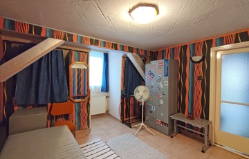 A házból kilépve az udvaron szemben találjuk a 20 nm alapterületű, különálló, kétszintes üzlethelyiséget, amely most lakásként van hasznosítva. Belépve egy amerikai konyhás bútorozott, gépesített, étkezős nappaliba érkezünk. Innen lépcső vezet a felső szintre, mely jelenleg hálószobaként funkcionál. A lépcsővel szemben nyílik az épített zuhanyzós, toalettes, 2 nm-es fürdőszoba. Itt a fűtést gázkonvektor biztosítja. Az udvaron tovább haladva a családi ház folytatásában találjuk a tárolókat, az elsőben kapott helyet a fűtést biztosító gázcirkó és egy vegyes tüzeléses kazán. A tárolókkal szemben, az udvar másik oldalán egy fémvázas, fedett rész került kialakításra.