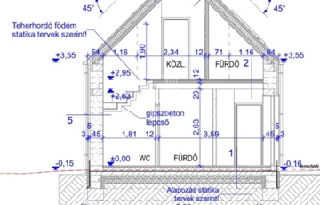 A telekre 2 szintes, összesen 145 nm-es hasznos alapterületű családi házat terveztek, melynek földszintjén amerikai konyhás nappali, fürdő, háztartási helyiség, és egy szoba kap majd helyet. Az emeleten 2 hálószoba, fürdőszoba, és külön WC kerül kialakításra. Amennyiben a vevő szeretné, a jelenlegi tulajdonos részletes megbeszélés után, kulcsrakészre építi a házat.