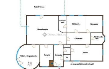 A lakótérben egy hatalmas nappaliszoba, 3 külön bejáratú hálószoba, egy hangulatos télikert (fűtött, szobaként szintén remekül használható), két fürdőszoba+wc (az egyik a szülői hálóhoz csatlakozó privát fürdőszoba), egy külön wc, egy ablakos konyha, egy előszoba, és egy a helyiségeket összekötő közlekedő helyiségek kaptak helyet. A legnagyobb hálószobához gardróbszoba is csatlakozik, továbbá a helyiség konyhapulttal is felszerelt, így akár önálló apartmanként is jól használható. A nappaliszobából hatalmas, több, mint 30m2-es fedett teraszra léphetünk ki, mely szeparált, belátástól mentes pihenést kínál a nap minden szakában.