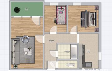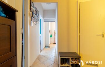 A lakás világos, praktikus elosztású: a szobákban laminált padló, míg a közlekedőben, konyhában, fürdőben és WC-ben hidegburkolat található.