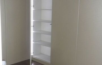 Beépített bútorokkal a konyhában beépített sütő, mikrohullámú, kerámialapos tűzhely, mosogatógép.