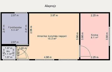 Kivételes lehetőség Csepelen, egy felújított állapotú, 30 m²-es, 1+1 félszobás, amerikai konyhás ingatlan, mely egy 200 m²-es telken helyezkedik el.