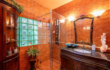 A gondosan kialakított udvar medencével, jacuzzival és szaunával valódi privát wellnessélményt kínál. A ház teljes berendezéssel kerül eladásra.