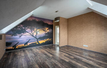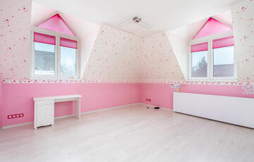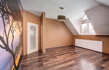Az emeleti szinten 3 hálószoba, egy külön gardróbszoba, egy fürdőszoba, valamint egy külön WC kapott helyet. Az ingatlan összesen 7 szobával rendelkezik, így nagyobb család vagy többfunkciós használat esetén is kiváló választás.