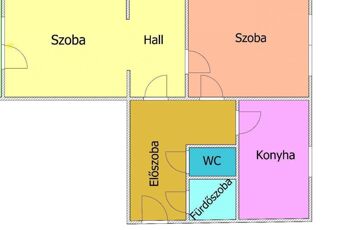 Elosztása: előszoba, fürdő, külön wc, nappali hallal, hálószoba, konyha.