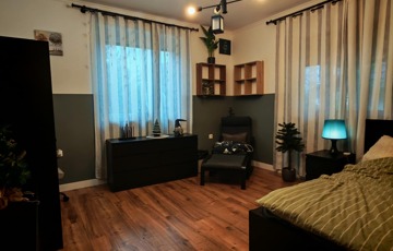 Bruttó 168 m2 lakótér 2 szinten, 5 háló szoba, 1 nappali, 2 fürdőszoba, gardrób szoba, 38-as Porotherm tégla falazat, 15 cm-es garfitos hőszigetelés, Födémen 10-15 Rockwool szigetelés, Bramac tetőcserép fedés, Cirkó padlófűtéssel, Klímaberendezés, Új nyílászárók, redőnnyel és szúnyoghálóval ellátva, valamint kényelmes terasz.