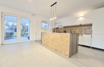 A földszint egy 50 m2-es, erkélykapcsolatos, pazar élményt nyújtó amerikai-konyhás nappalit, vizesblokkot, az emelet pedig két erkély és egy kertkapcsolatos hálószobát, kádas fürdőszobát foglal magába.