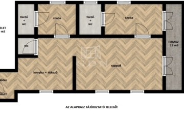 1. EMELET: 95,6 m2 – 3 szoba – 2 fürdő – TERASZ: 12 m2