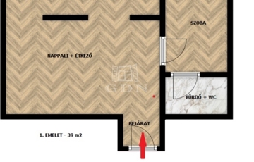 1. EMELET: 39 m2 – 2 szoba – 1 fürdő