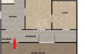 1. EMELET: 44,5 m2 – 2 szoba – 1 fürdő – TERASZ: 29,3 m2