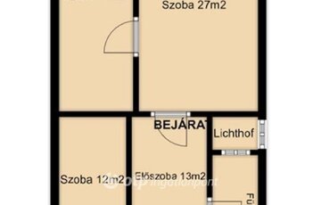 Jelenleg két különnyíló, kényelmes hálószoba került kialakításra, egy kisebb 12 m2-es és egy nagyobb 17 m2-es szoba, de a tulajdoni lapon 3 szobásként szerepel, így az elrendezés rugalmasan alakítható az új tulajdonos igényei szerint.
