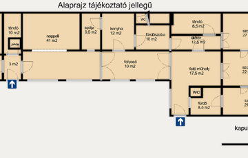 Pl.: több generációs lakóingatlan, vagy üzleti célú hasznosítás, 3 külön bejárat révén az épület könnyen szétválasztható több lakássá, de kiválóan alkalmas üzlethelyiség, rendelő, esetleg galéria kialakítására is.