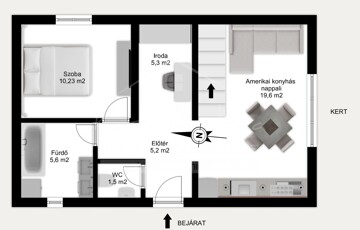 • valamint egy leválasztható plusz helyiség, amely gardróbnak, dolgozószobának vagy akár kisebb étkezőnek is ideális