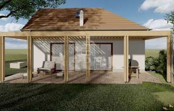A ház engedélyes tervekkel rendelkezik 50 m2-rel történő bővítésre. Ennek az alapja már elkészült, ez a jelenlegi a terasz. Megvalósítás esetén ide kerülne a hangulatos amerikai-konyhás nappali, kandallóval, magas légtérrel – szintközi födém nélkül. Így összesen 130 m2-es, 3 szobás korszerű és stílusos állandó vagy második otthon kialakítására van lehetőség.