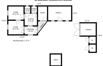 Az ingatlan 1230 nm.-es telken épült meg kb. 70 nm.-es lakó lehetőséggel . Jelenleg kisebb ráfordítással élhető otthon, számos melléképülettel ,műhellyel , tárolókkal , garázzsal , kis pincével.