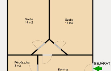 2 szoba parkettás, konyha és fürdő járólappal és csempével burkolt