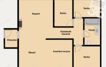 Nappali + 3 szoba, garázs, fürdő, tágas nappali étkező, amerikai konyha.