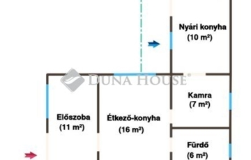 Belső elrendezése praktikus és jól átgondolt: két nagyméretű szoba áll rendelkezésre, a terek arányai pedig lehetővé teszik az átalakítást, korszerűsítést, modern élettér kialakítását.