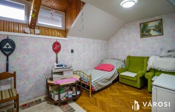 A felső szinten 2 darab nagy méretű szoba található, valamint tágas kádas fürdőszoba WC-vel, 43 négyzetméteren. Innen közelíthető meg a tárolásra alkalmas kis padlástér is.