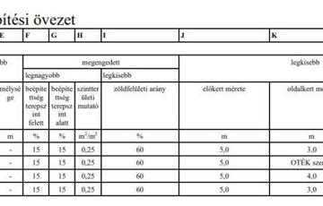 Beépíthetőség: Maximum 15% beépíthetőség megengedett, magastetős épületekkel. 10% feletti beépítés esetén ciszterna kialakítása szükséges.