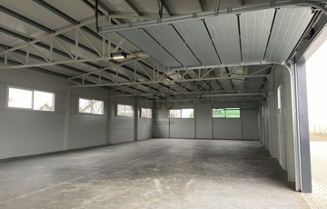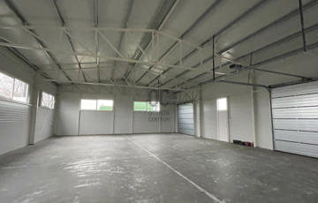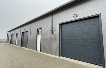 Összesen 3db bejárattal és 3db 3x3m-es szekcionált HÖRMANN távirányíthatós garázskapuval ellátott, így az épület igény szerint akár 3 részre is osztható/ leválasztható, továbbá megtalálható egy mellékhelyiség kézmosóval. Nagy belmagassággal rendelkezik, legmagasabb pontja 5,6 méter.