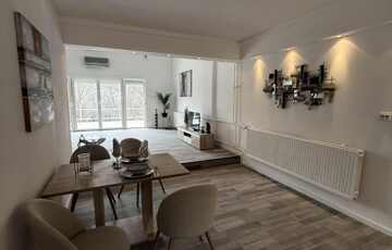 Az ingatlan szíve a világos, nagy terekkel rendelkező amerikai konyhás–étkezős nappali, amely ideális helyszíne a családi és baráti együttléteknek.