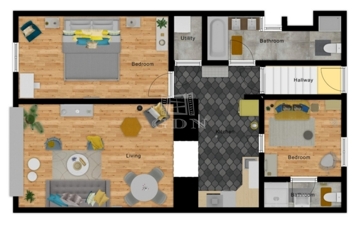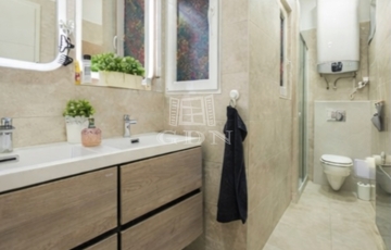- Az előtérből nyílik a tágas, kádas–zuhanyzós fürdőszoba , a nagy ablakos utcai hálószoba, a kisebb háló saját zuhanyzós, WC-s fürdővel - ,