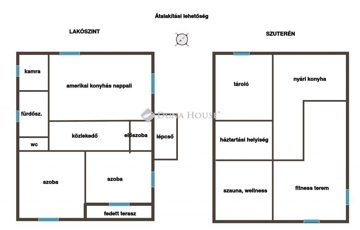 Könnyen átalakítható 2 nagyobb vagy 3 kisebb hálószoba + amerikai konyha nappalis otthonná, a szuterén részen pedig fitness, wellness, szauna, nyári konyha, hobby szoba is.