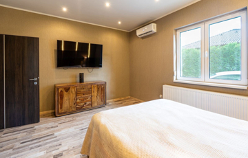 Műszaki:Főfalak 30-as porotherm tégla,válaszfalak 25 cm , fűtés kondenzációs cirkó 32 KW, radiátor és padlófűtés, 3 rétegű hőszigetelő üvegezésű kívül színes bukó-nyíló nyílászárók, 10 cm-es dryvit szigetelés, riasztó ,alumínium redőny ,szúnyogháló beépítés , hűtő-fűtő klímák több helyiségben, padlófűtés, elektromos kapu és garázskapu, cserépfedés,térkövezés,kerti faház (9 m2), öntöző rendszer, hőszivattyúról fűthető medence( 6 x 3méteres), fénytechnika,kerti világítások,fedett terasz,kerti bútorok,sütögető, 9 db tv a házban (47colos-75colos), wellness részleg 6 fős finn szauna zuhanyzóval .