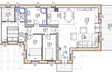 -bruttó 122nm-es ikerház( 3 lakószobával,2 fürdőszobával(duplakomfortos), tárolóval, közlekedővel és amerikai konyhás nappali(16nm-es fedett terasz, 12nm-es garázs és 95nm-es lakóingatlan