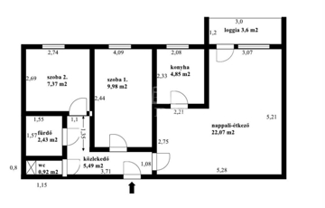 - Az ingatlan praktikus elrendezésű: 2 külön nyíló szoba és egy nappali került kialakításra, a fürdőszoba és a WC külön helyiségben található.