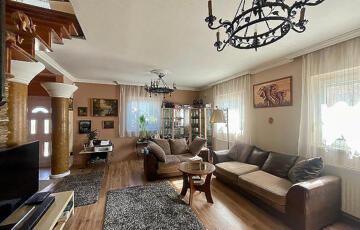 A 2000-ben épült, 150 négyzetméteres családi ház az 549 négyzetméteres telek első felében helyezkedik el, így helyet hagyva a hátul kiépítésre került kerti grillnek, beépített medencének, és egy 30 négyzetméteres melléképületnek, ahol egy szauna garantálja a maradéktalan kikapcsolódást.