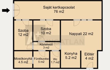 - A lakáshoz tartozik egy 76m2-es kertrész amely kocsibeállónak is használható.