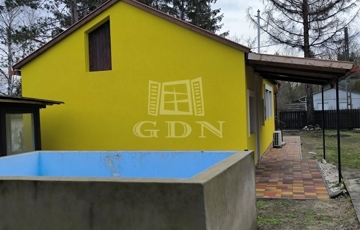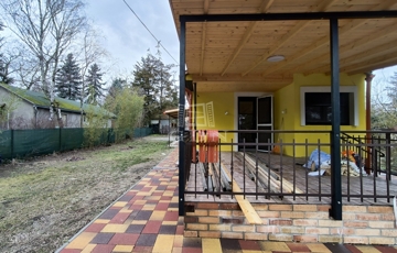 Pócsmegyer Surány II részén eladó felújított, fa szerkezetű, 56 nm-es (+8 nm-es tároló, + 16 nm-es fedett terasz, + épített medence) ház, 514 nm-es telken.