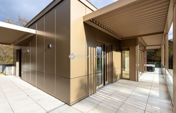 A dús növényzettel teli, 2234 m2-es telekre épült 3 szintes ingatlan a városi kényelem és a természetközeli élet ideális kombinációját kínálja. A tervezés során kiemelten ügyeltek a privát terekre. Nagy figyelmet kapott a praktikusság, a tágas élettér és a kényelmes, jól kihasználható teraszok kialakítása, melyek alapterületének arányos része a megadott összterületbe is beleszámít.