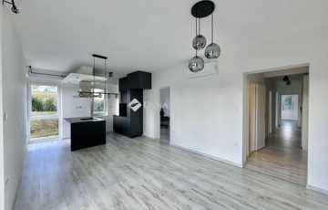 Eladó újszerű kertvárosi lakás, saját parkosított kertkapcsolattal!!!!!Pécs egyik csendes, zöldövezeti részén kínálunk megvételre egy 2023-ban átadott 92 m²-es földszinti lakást, amely minden igényt kielégítő belső kialakítással és kivételes külső adottságokkal rendelkezik.Kertkapcsolat és extra területekA lakáshoz tartozik egy 240 m²-es kizárólagos használatú, parkosított kert, benne egy könnyűszerkezetes, 10 m²-es kisházzal ideális tárolónak vagy hobbihelyiségnek.Két kényelmes terasz, mindkettő beépített, kinyitható árnyékolóval.Belső elrendezés 3 hálószoba Tágas nappali-konyha-étkező egy légtérben 2 igényes fürdőszobaPrémium felszereltség FAP olasz hidegburkolatok Hansgrohe falba süllyesztett csaptelepek Blanco gránit mosogató és csaptelep a konyhában Minőségi német konyhabútor kompakt munkapulttal, konyhaszigettel Új, elektromos fehér alumínium redőnyök minden ablakon Hőszivattyús padlófűtés + fancoil hűtés a kellemes klímáért egész évben Alacsony rezsiköltségek, energiahatékony, és letisztult, igényes belső terek.Elhelyezkedés szempontjából is ideális:A belváros autóval mindössze 7 perc, de a tömegközlekedés is kiváló. A mindennapi ügyintézéshez szükséges szolgáltatások csupán egy percre találhatók: Tesco, Rossmann, gyógyszertár, minden gyalogosan is gyorsan elérhető.