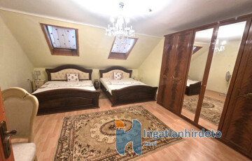 Elhelyezkedése: Zöldövezet Tájolása: Dél-keleti tájolású Állapota: Használt - felújított Komfort besorolása: összkomfortos Építési éve: 1980 Alapterülete: 160 m2 Telekterülete: 645 m2 Szobák száma: 5szoba Felújított: Felújított Felújítás éve: 2022 Felújítás során elvégzett munkák: Festés, Villanyrendszer csere, Csempe csere, Járólap csere, Parketta csere, Fűrdőszobai szaniterek cseréje, Külső hőszigetelés, Új külső vakolat Közművek: Víz, Villany, Csatorna Vízellátás: Vezetékes víz Melegvíz-ellátás: Villanybojler Áramellátás: 230V/380 V Fűtés módja: Fa, Villany Homlokzat állapot: Újszerű Építési mód: Tégla Tető formája: Magas Tető anyaga: Cserép Parkolási lehetőség: Telken Kilátás: Hegyi panoráma Napelem: Van Teljesítmény(kW): 5 kW Jellemzői: Csendes környék, Két bejárat, Udvari terasz, Beépíthető tetőtér, Beépített konyhabútor, Kert, Beépített tetőtér Energetikai besorolás: E Egyéb jellemzők: Erkély, Terasz Tv, Internet: Kábeltévé, Internet Közelben: Autóbuszállomás, Orvosi rendelő, Bolt, Vendéglátó egység Eladásra vonatkozó információk: Az ár tartalmazza a teljes berendezést